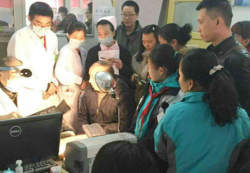 天还未亮,受雾霾天气影响,能见度更低,医护一行五点从西安中大耳鼻喉医院出发,驾车近三小时,到达韩城医院。上午8点整,会诊准时开始。韩城医院准备了丰富的病例等候中大医生会诊,而更多的百姓则排队等候在诊室门口,想请医生“把一把脉”。
